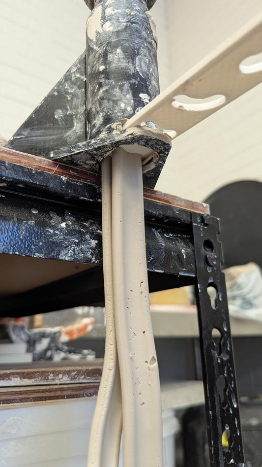 Pottery base setting tool with a 0-40mm adjustable range. Pottery accessibility aid, and an essential beginners pottery tool.